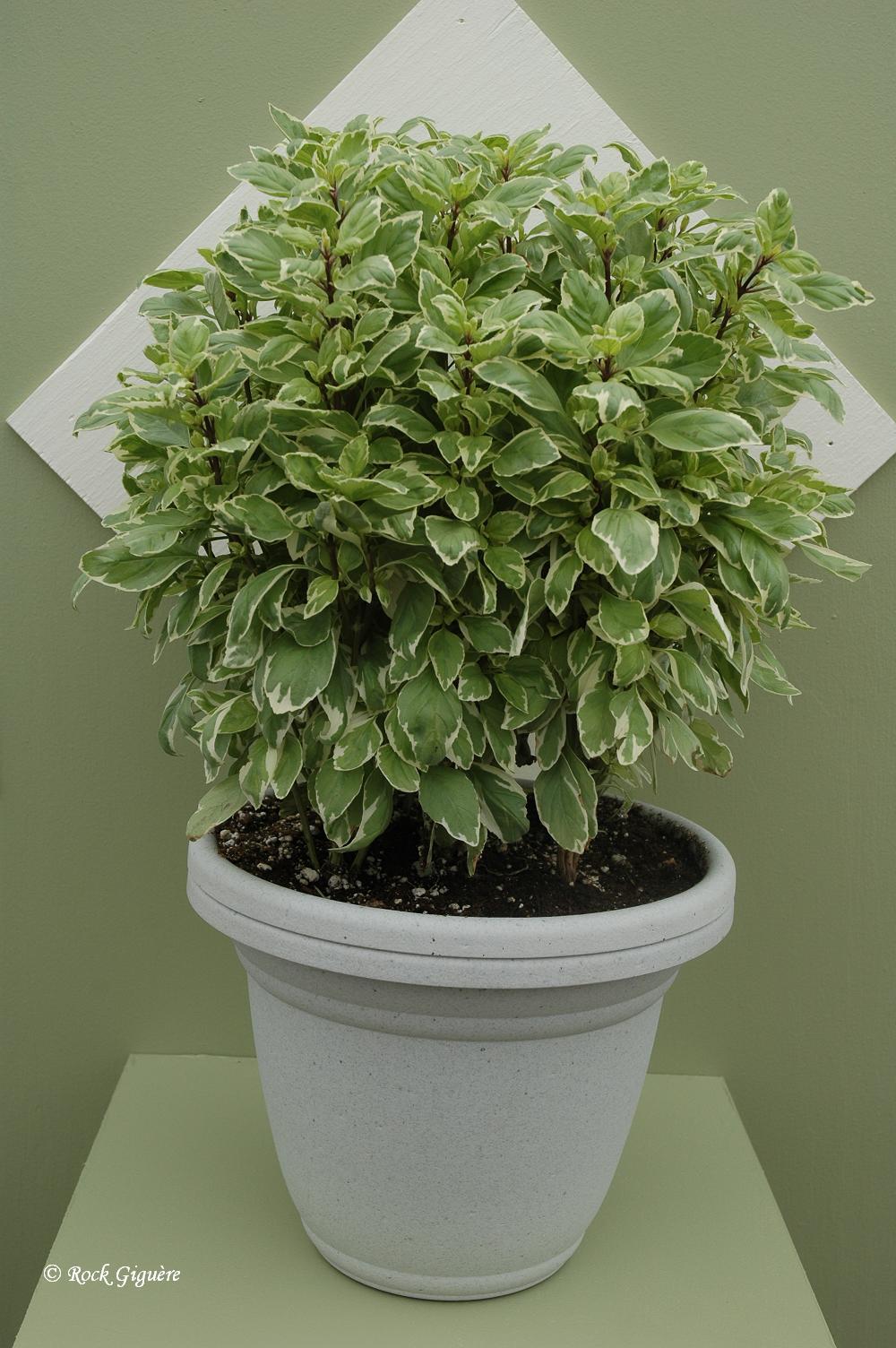 Greek columnar basal ‘Pesto Perpetuo’, Greek columnar basal ‘Pesto Perpetuo’, Pesto Perpetuo green columnar basil, Pesto green columnar basil, basil ‘Pesto Perpetuo’, basil ‘Pesto’, variegated basil.